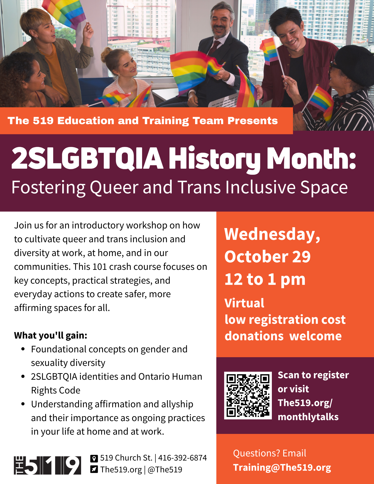 Join us for an introductory workshop on how to cultivate queer and trans inclusion and diversity at work, at home, and in our communities. We are bringing back this 101 crash course for you to learn key concepts, practical strategies, and everyday actions to create safer, more affirming spaces for all.