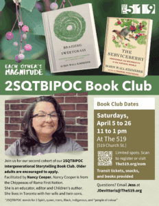 Location: The 519 Community Centre. This book club will provide a hybrid option, and a zoom link will be sent through our weekly reminders.