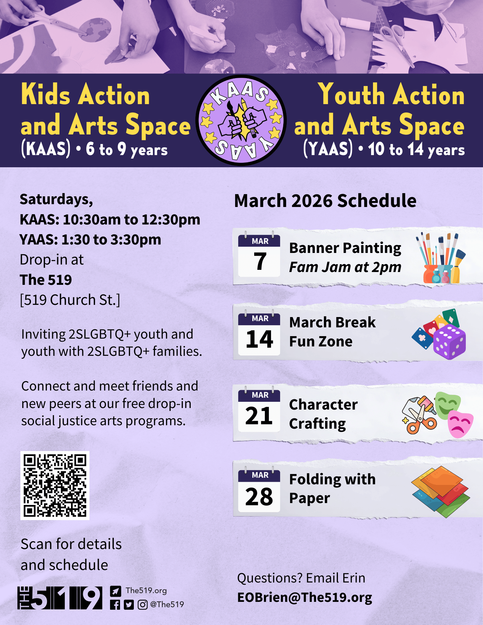 The 519’s Kids Action and Arts Space (KAAS) is a free, drop-in program that offers youth who are 6 to 9 years old a fun place to connect, meet friends and new peers.