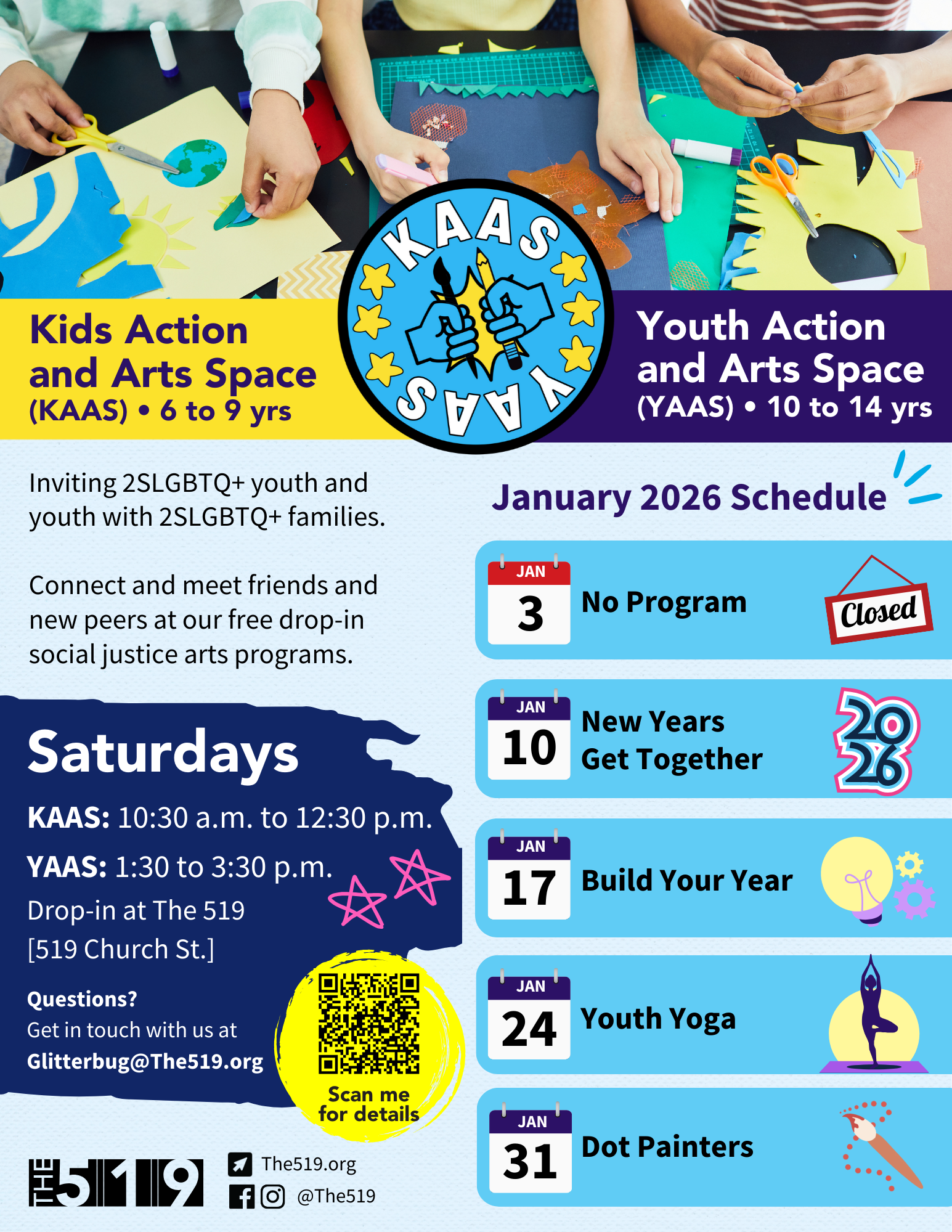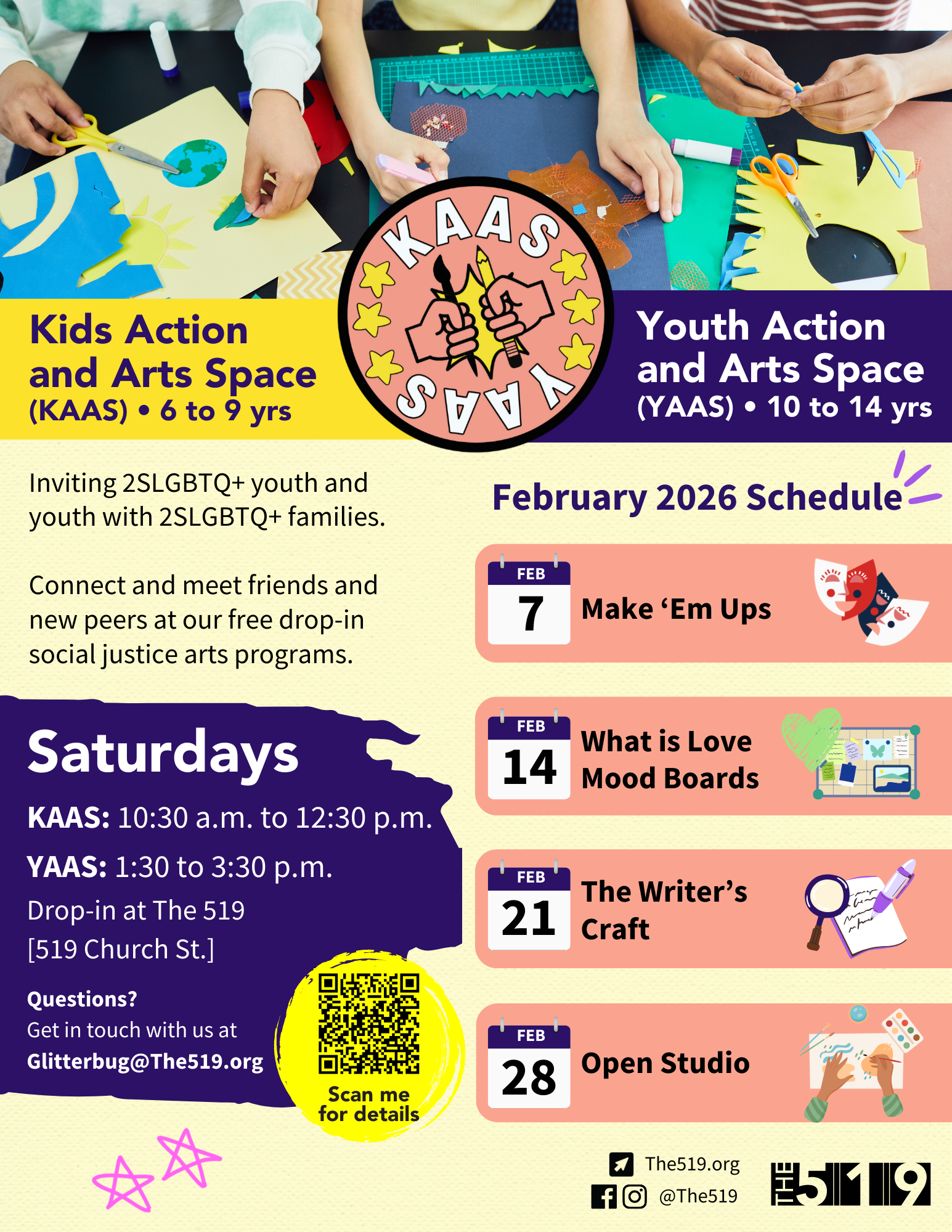 The 519’s Kids Action and Arts Space (KAAS) is a free, drop-in program that offers youth who are 6 to 9 years old a fun place to connect, meet friends and new peers.