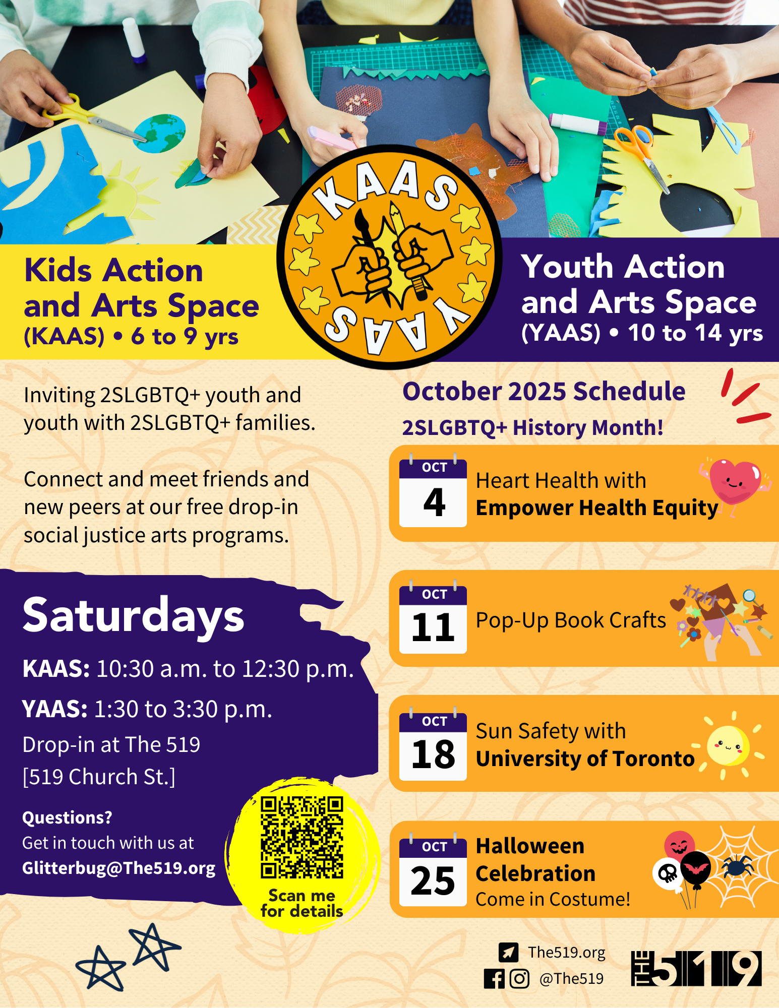 The 519’s Kids Action and Arts Space (KAAS) is a free, drop-in program that offers youth who are 6 to 9 years old a fun place to connect, meet friends and new peers.