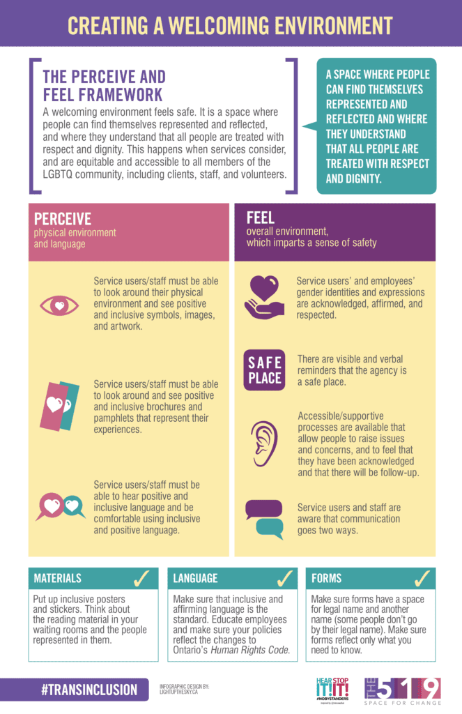 Our Creating Authentic Spaces toolkit and education program is part of our efforts to challenge transphobia and to foster environments that are inclusive of gender identity and gender expression.